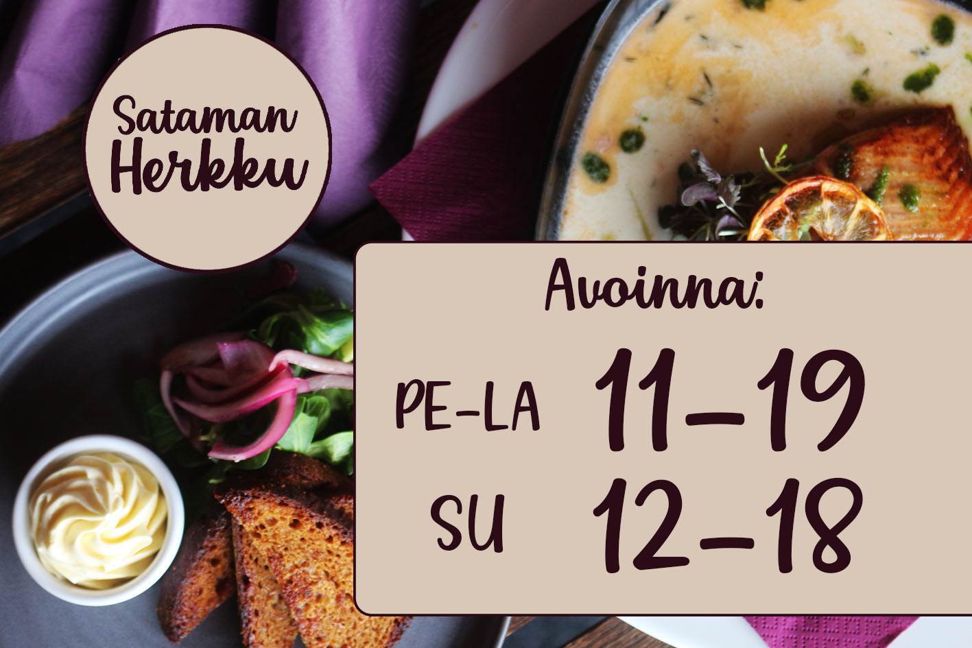 Sataman Herkku on hurmaava ravintola Hirvensalmen vierasvenesatamassa. Kesäkaudella voit nauttia keittiömme antimista, raikkaista juomista ja Puulaveden kuvankauniista maisemista suurella terassillamme. Keittiömme tarjoaa herkullisia à la carte -annoksia kausittain vaihtuvalta listalta, suussa sulavia pitsoja sekä päivän annoksia. Ravintolassamme on A-oikeudet. Sataman Herkku edustavine tiloineen soveltuu erinomaisesti erilaisten yksityistilaisuuksien järjestämiseen. Ota yhteyttä ja kysy lisää https://www.facebook.com/SatamanHerkku/