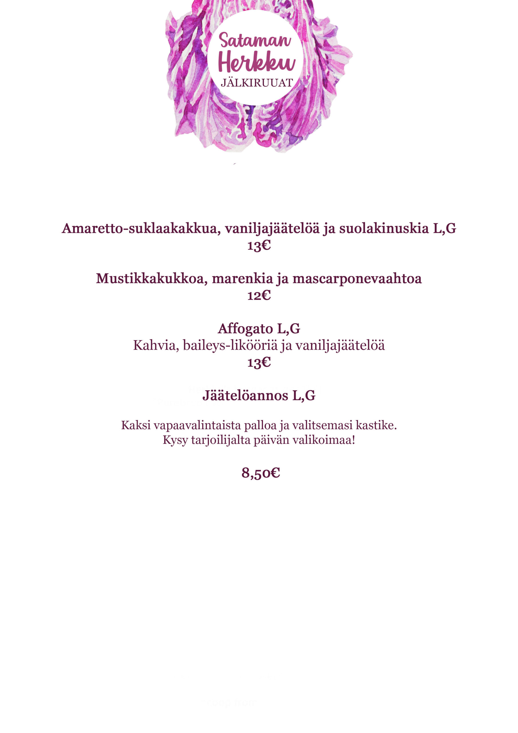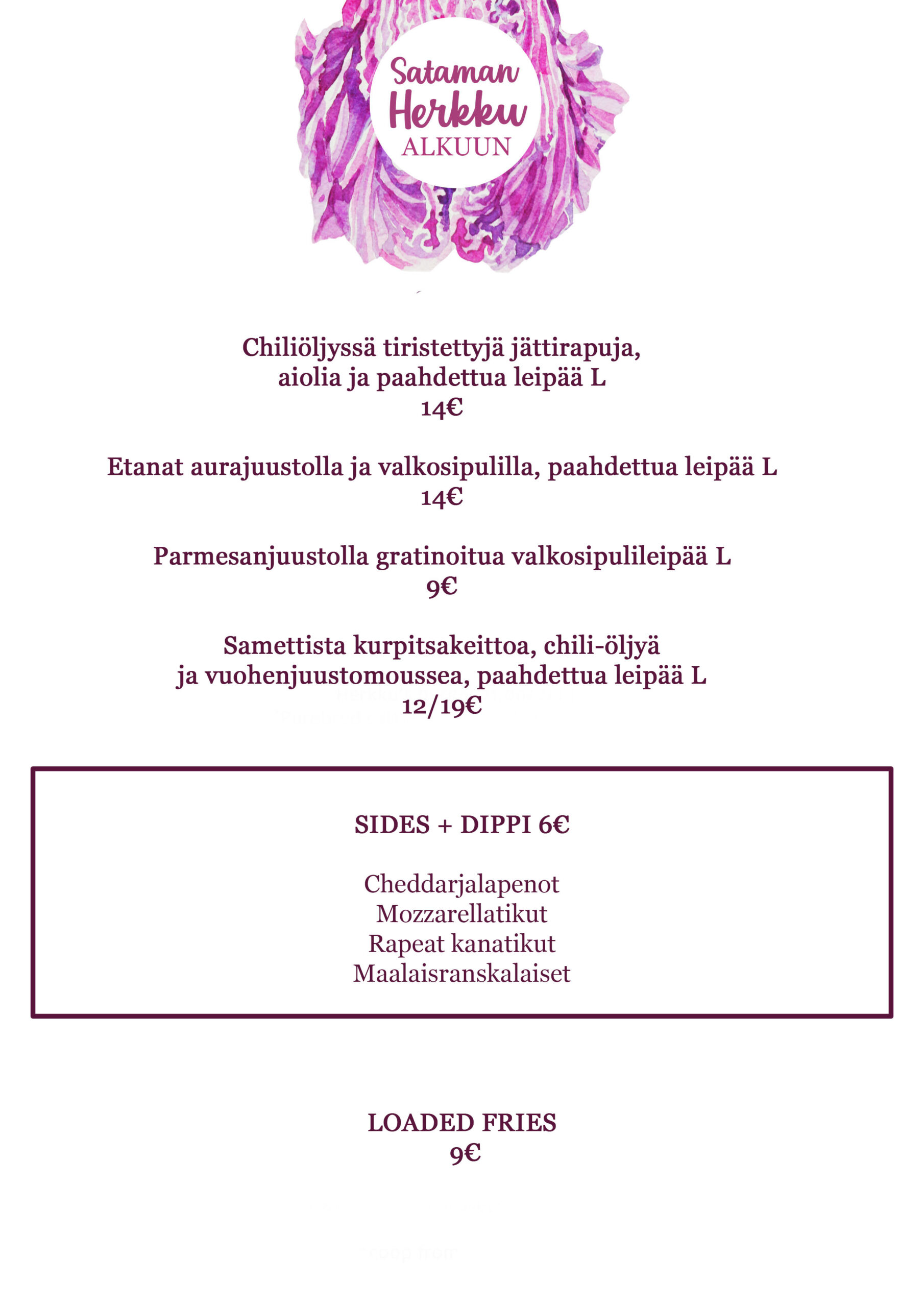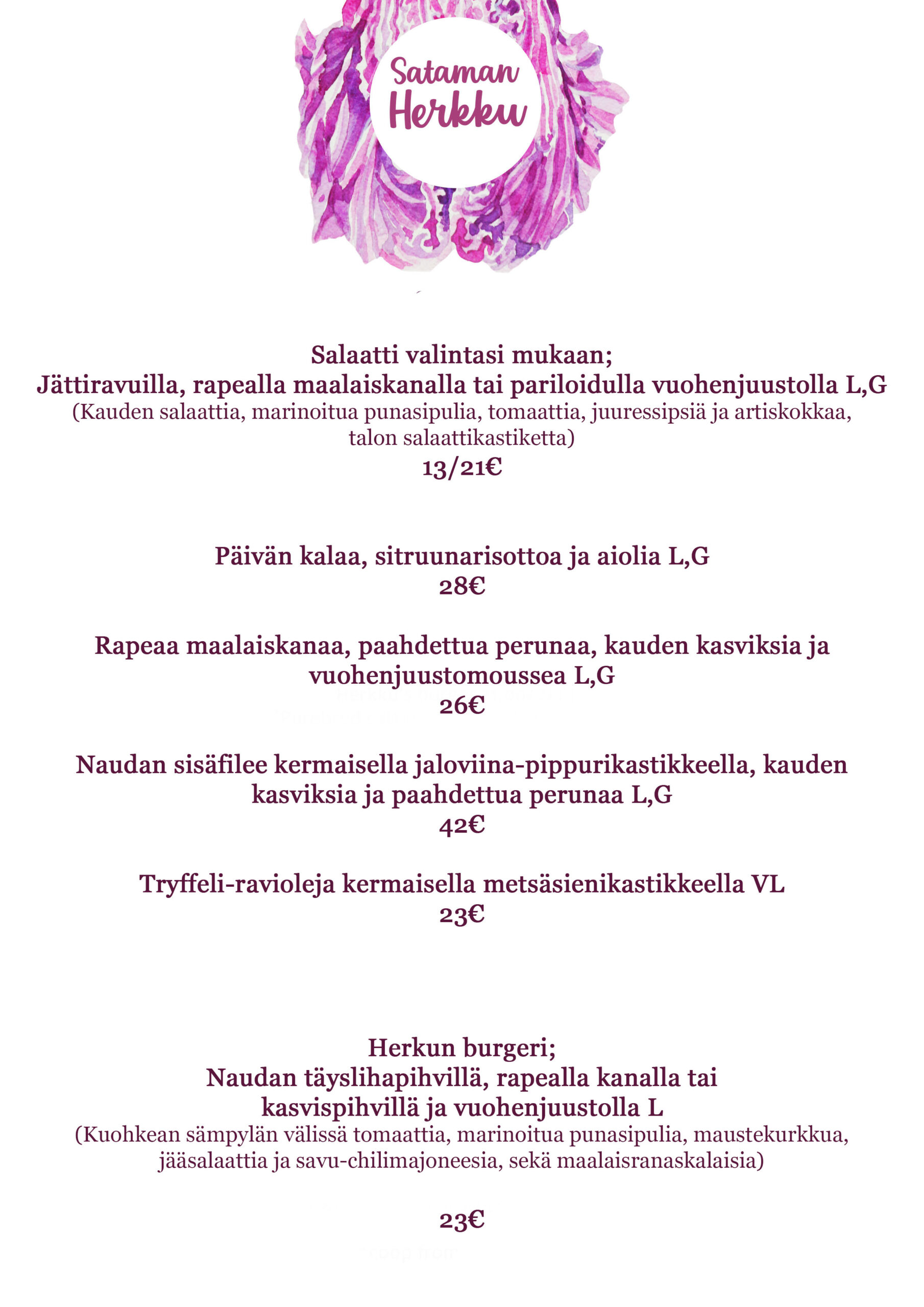 Sataman herkulliset annokset myös mukaan. Tilaa numerosta 044 705 9565 tai sähköpostilla